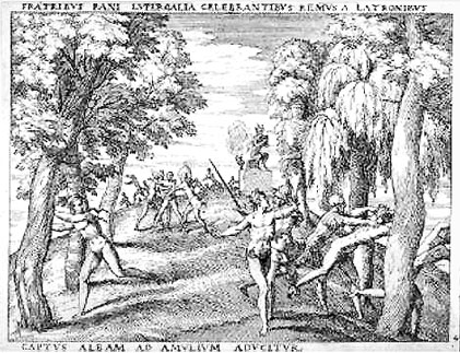 Los antiguos romanos azotaban a sus mujeres en el Monte Palatino con tripas sagradas de cabra para que éstas pariesen, realizando así el rito de la fecundación, que no sólo afectaba a sus intereses individuales. Estos ritos eran llamados las Lupercalias. En la etimología de esta voz está presente el nombre de lobo.
